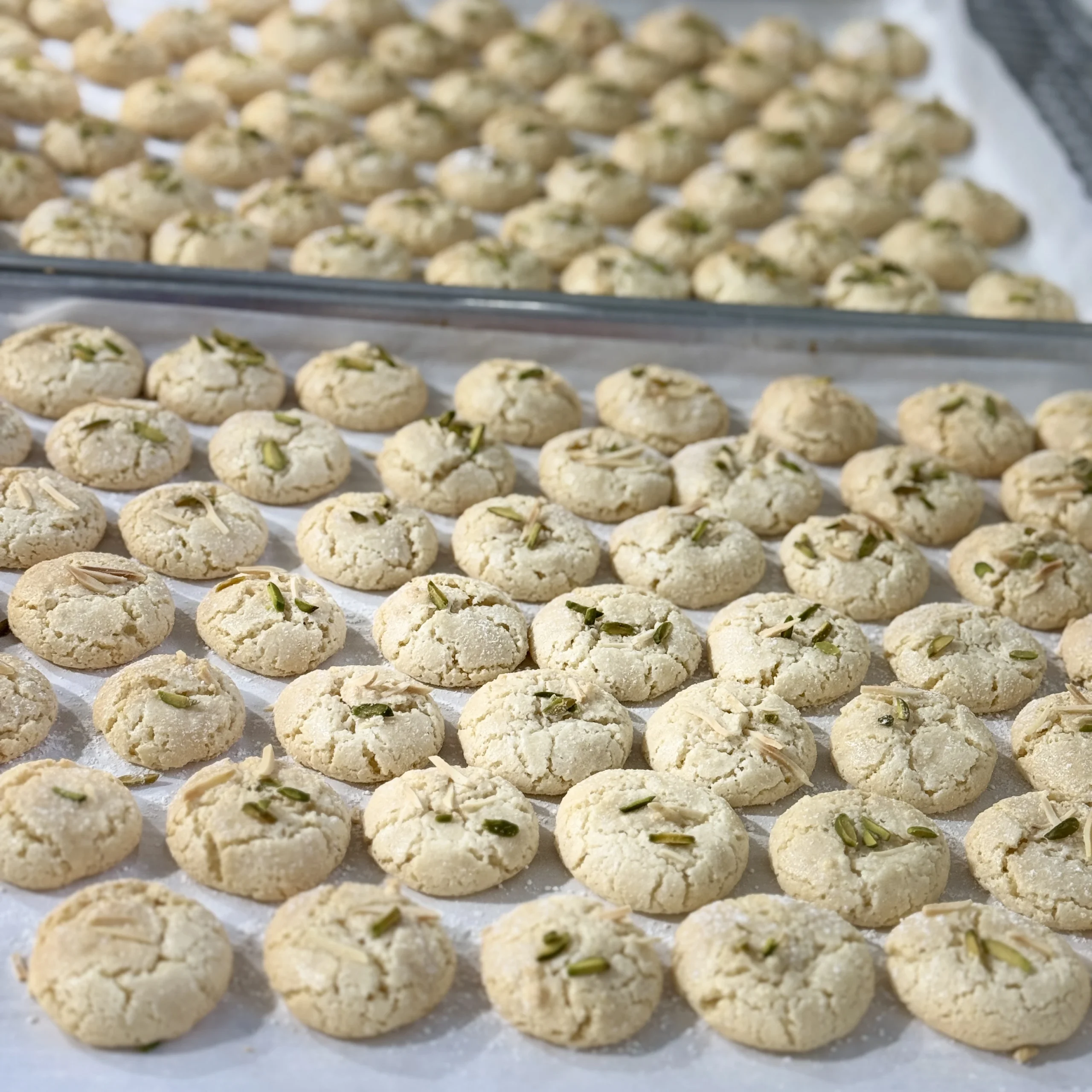 Light and delicate Iranian cookies made with whipped egg whites and almond flour, offering a crisp exterior and tender, melt-in-your-mouth texture.