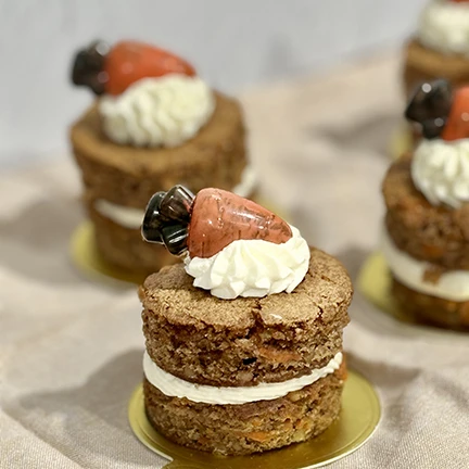 Tender carrot and walnut cake infused with warm cinnamon, topped with creamy cream cheese frosting.