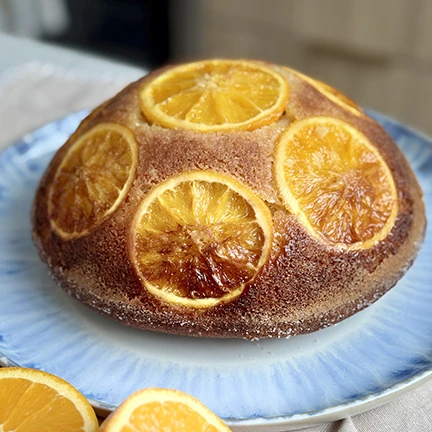 Light, fluffy orange sponge cake, perfectly domed and infused with vibrant citrus notes.