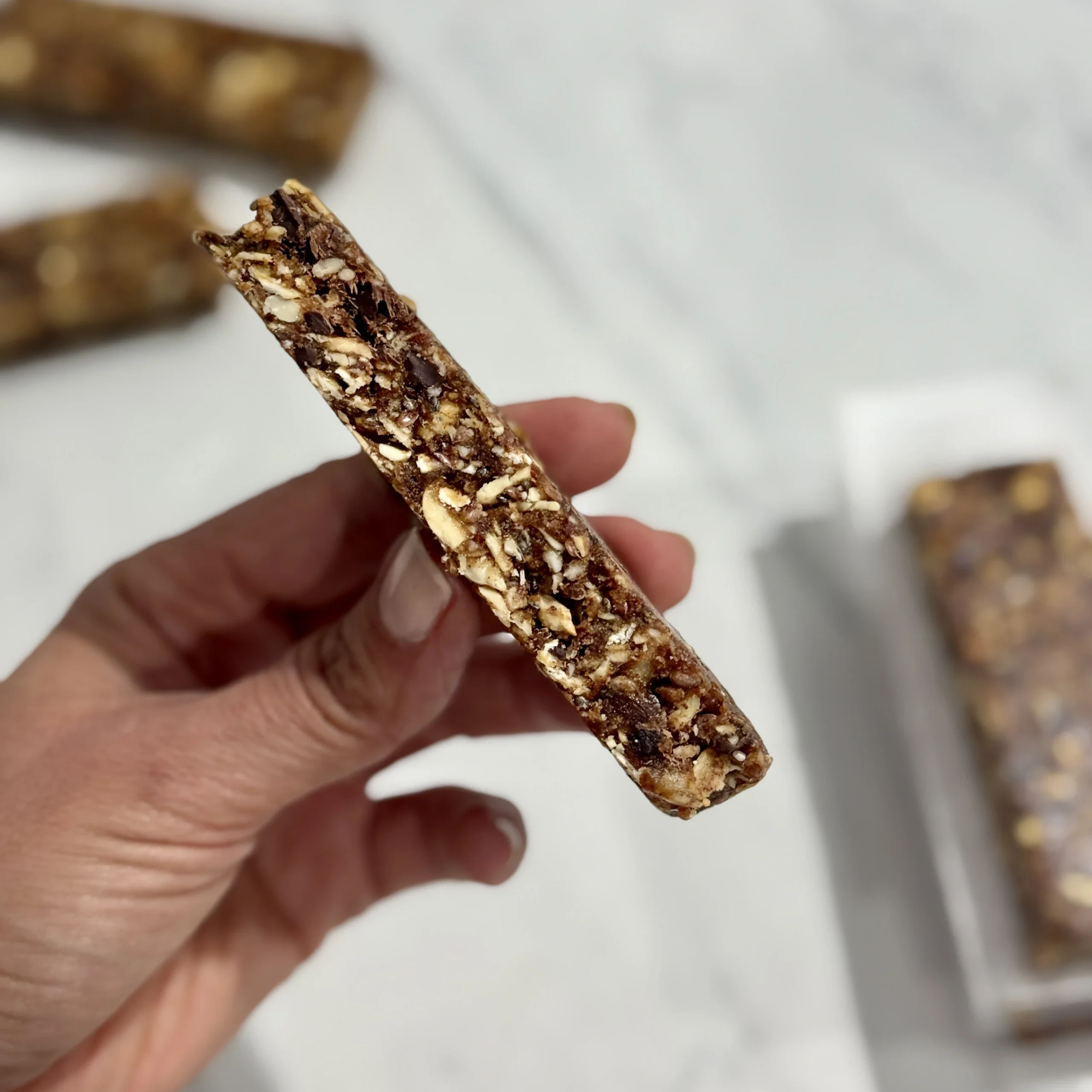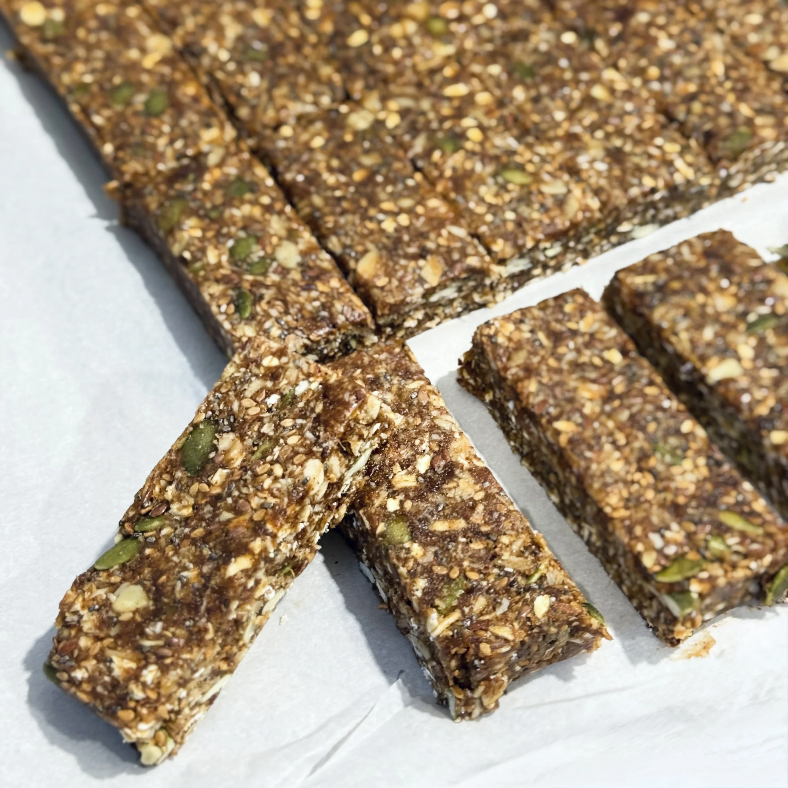 Wholesome superfood bars made with a blend of nuts, seeds, and dried fruits, naturally sweetened with dates. Packed with flax, chia, and hemp seeds for a nutrient-dense, energizing snack.
